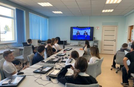 Ребятам рассказывают, в каких российских вузах можно получить «профессии будущего» и как в России можно строить научную карьеру.